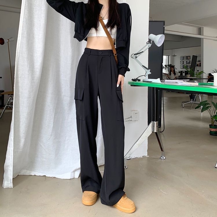 Pakaian Wanita > Celana Panjang & Legging > Legging & Tregging > TELLY ➡️ BJ-022 Celana Kargo Wanita Gaya Korea Retro Pinggang Tinggi Celana Casual Kaki Lebar