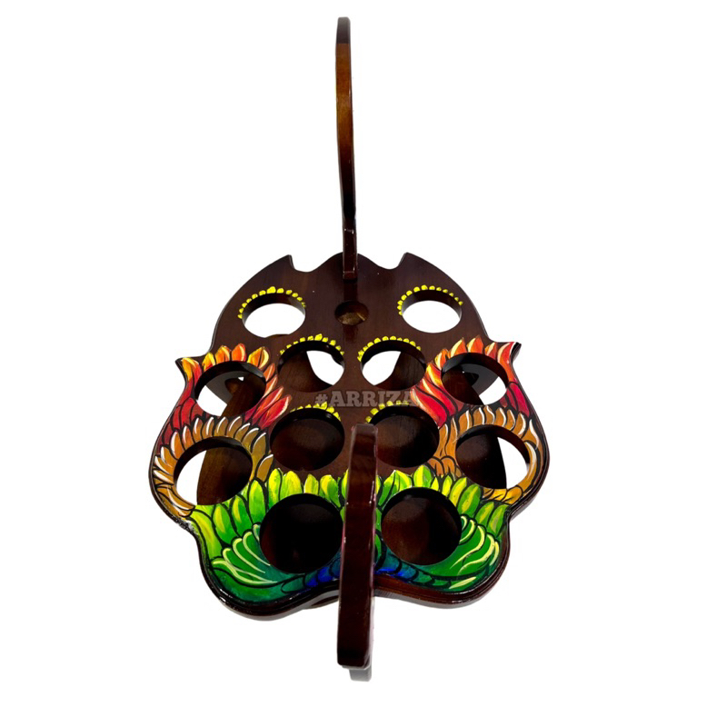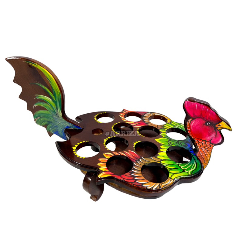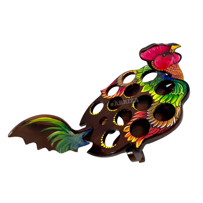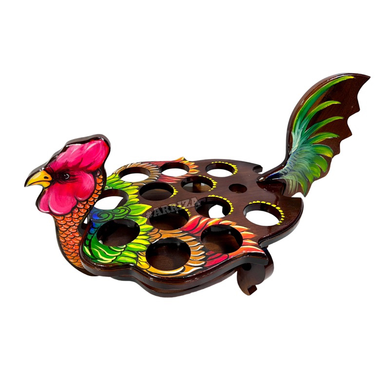TEMPAT AQUA GELAS KAYU JATI MODEL AYAM JAGO BERDIRI Motif Warna