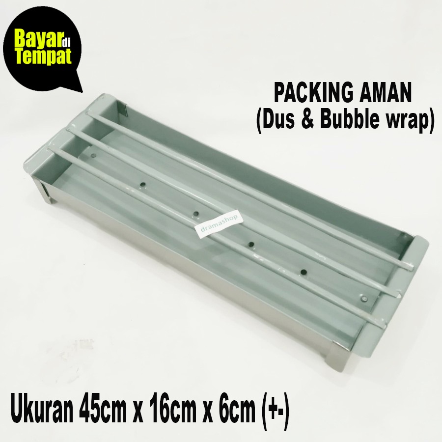 * Ukuran sekitar 45cm x 16cm x 6cm (terkadang ada sedikit perbedaan, harap dimaklumi buatan industri rumahan) * Kedalaman wadah 4cm * Bahan plat besi lumayan tebal * Plat besi dilapisi cat besi, lebih tahan karat * Berat produk terhitung berat volumetrik * Pembelian dalam jumlah banyak akan kami sesuaikan berat produknya