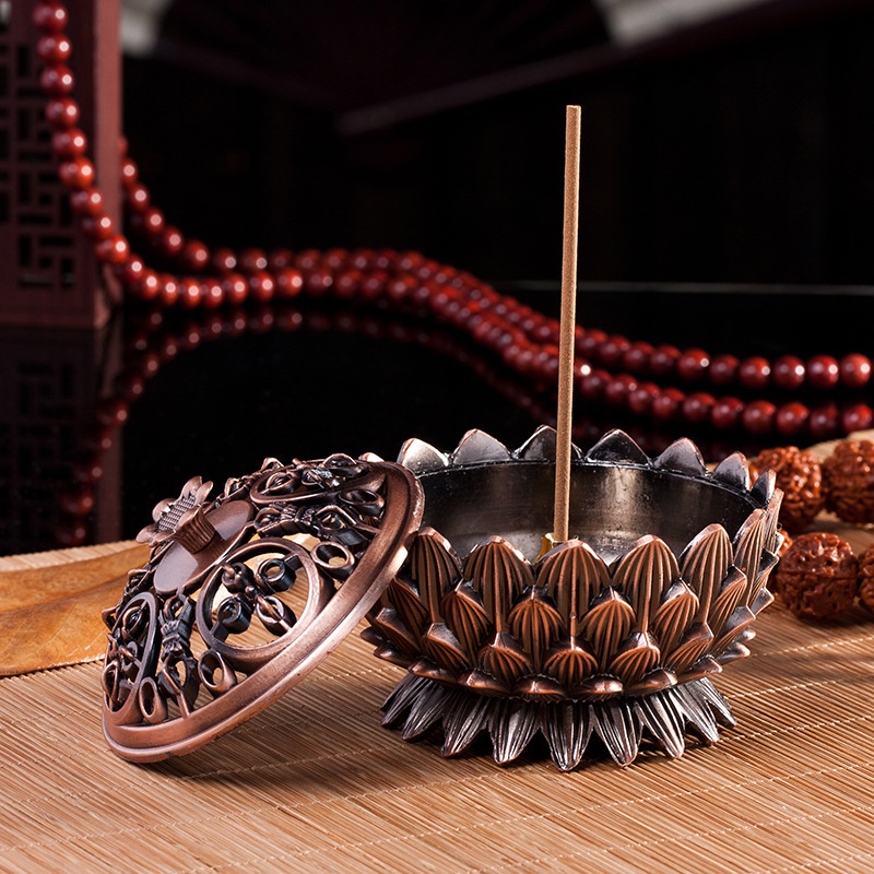 ✔Spesifikasi Bahan: Paduan Seng Warna: Perunggu, Perunggu merah, Emas Ukuran: Perkiraan. 7x7cm Paket berisi: 1 x Tempat Bakar Dupa Lotus