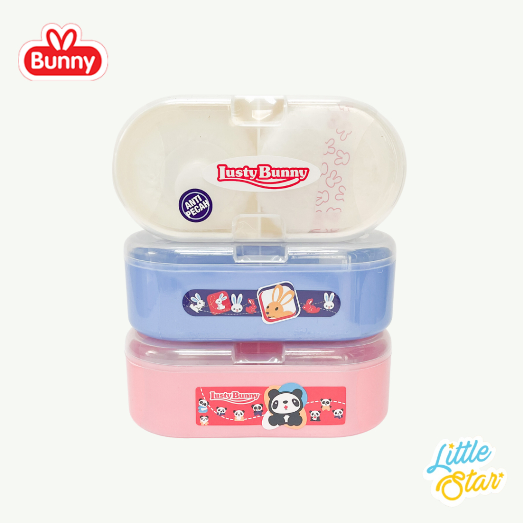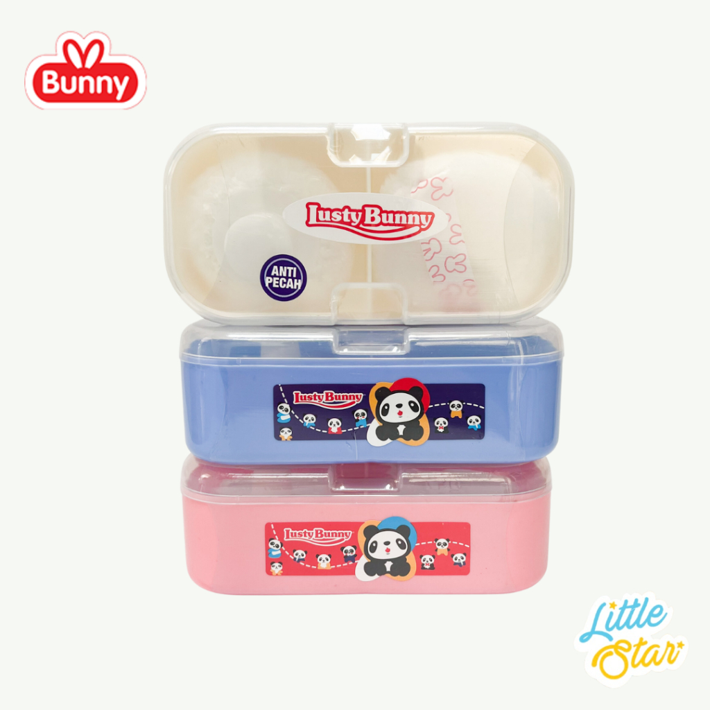 Tempat Bedak Tabur Bayi Anti Pecah 2in1 Lusty Bunny Baby Powder Case Double Puff 2 Sekat