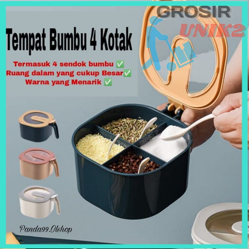 Detail Tempat Bumbu 4 Sekat/ Kotak Bumbu 4 in 1/ Tempat Bumbu Dapur GRosir unik