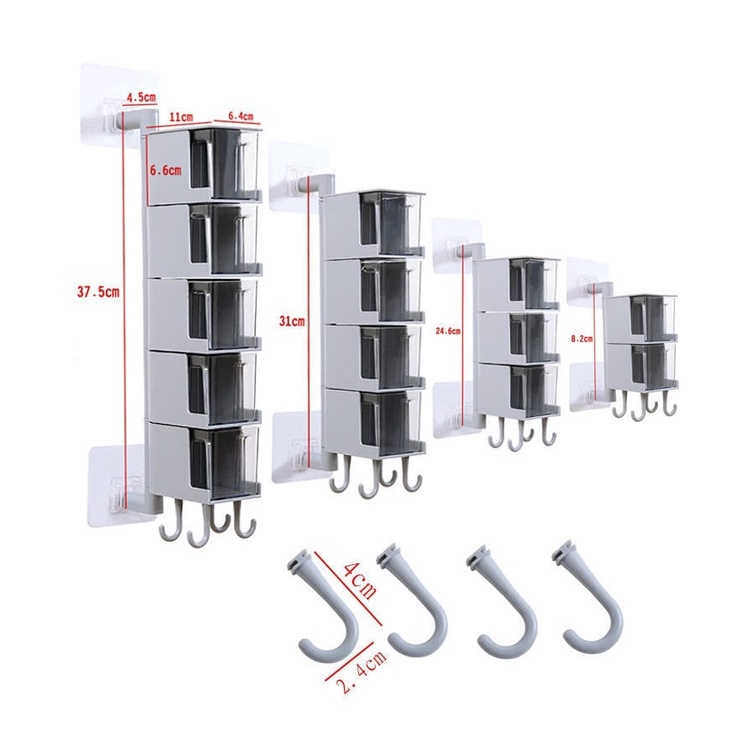 Terdapat 4 Sendok dan 4 Pengait untuk mengaitkan berbagai macam jenis peralatan / barang dapur.