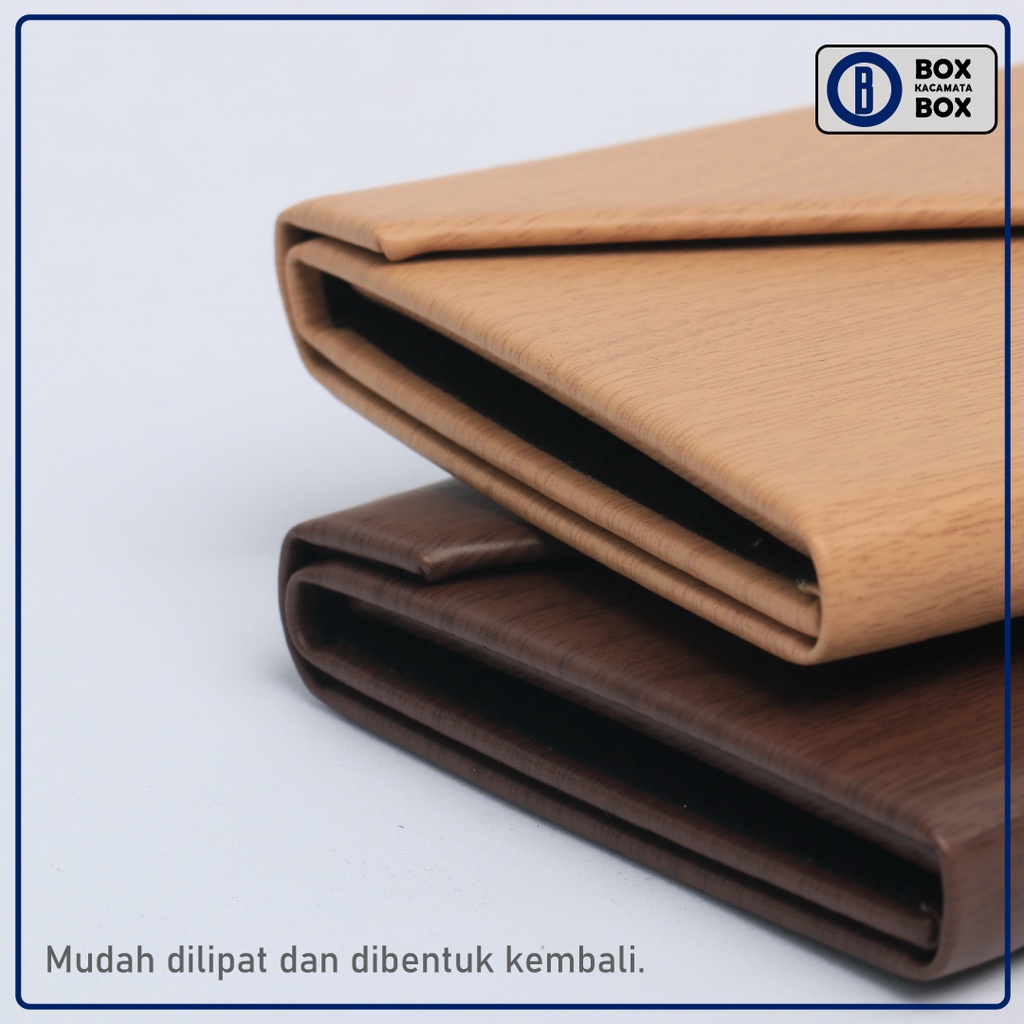 Box Kacamata prisma yang sangat keren dengan design pola kayu , memiliki penyimpanan yang luas cocok untuk frame maupun sunglasses, bahan yang aestethic yang kuat dan kokoh, apabila kalian menyukai hal yang simple sangat rekomend sekali memakai type seperti ini, mudah di lipat dan tidak memakan penyimpanan,