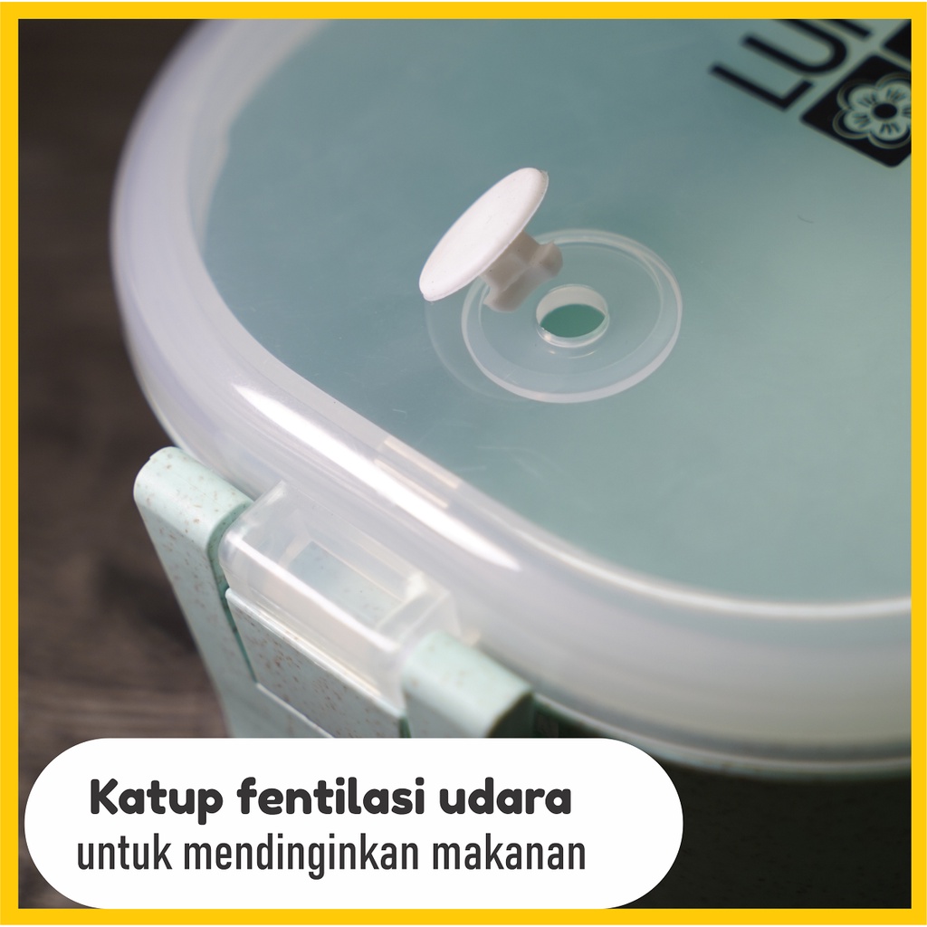 Detail Tempat Kotak Makan Lunch Box Oval 2 Sekat Jerami Gandum Free Sendok PREMIUM