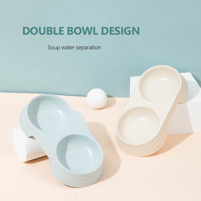Hobi & Koleksi > Aksesoris Hewan Peliharaan > Mangkuk & Feeder > Tempat Makan Kucing Mangkuk Ganda 2 in 1 Kucing Anjing Anti Licin Anti Semut Mangkuk Makan Bulat Tempat Makan Double Bowl Hewan Peliharaan