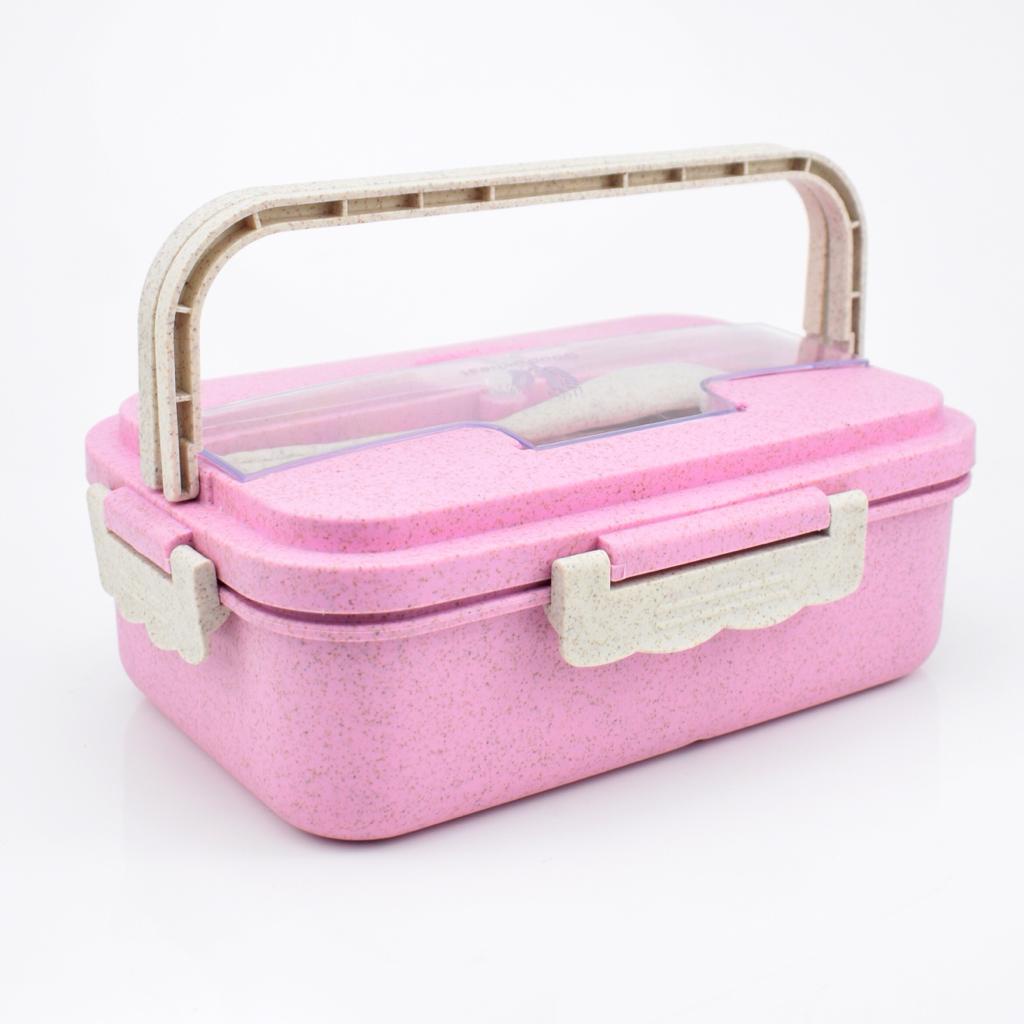 Tempat Makan Makan Kotak Makan Lunc Box Kotak Jerami Gandum Anti Tumpah + Sendok Garpu