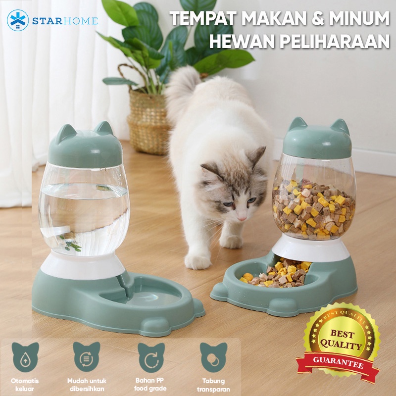 Fitur ⭐ Auto Water Feeder/minum dan auto feeder/makan (Beda fungsi ya) ⭐ Dijual satuan bukan per set ya Ka ⭐ Desain untuk kucing dan anjing ⭐ Ukuran kontainer yang besar 2.2L, cukup 2-3 hari untuk hewan kecil atau medium ⭐ Sistem auto feeding - makanan akan keluar secara otomatis ⭐ Mudah perawatan - Kontainer bisa dicabut dan cuci (tapi jangan isi atau cuci dengan air panas) ⭐ Ada antislip supaya tidak mudah bergeser waktu minum atau makan.