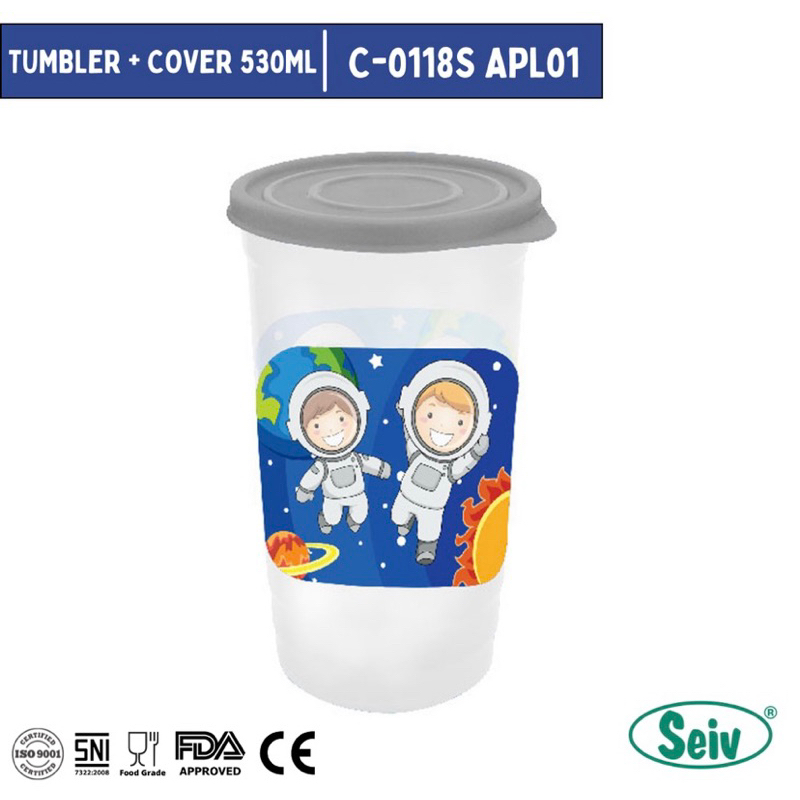 Perlengkapan Rumah > Peralatan Makan > Botol Minum & Aksesoris > Tempat Minum / Botol Tumbler + Tutup Plastik Karakter Anak ONYX SEIV / Gelas Minum + Tutup