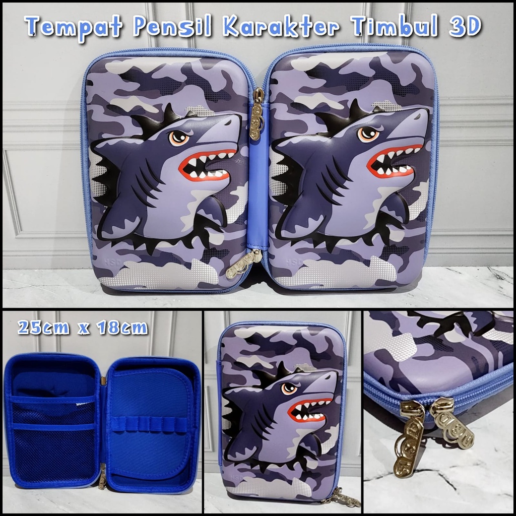 Tempat pensil Anak Karakter Unicorn Dino Astronot Timbul 3D Pencil Case Frozen Kotak Pensil