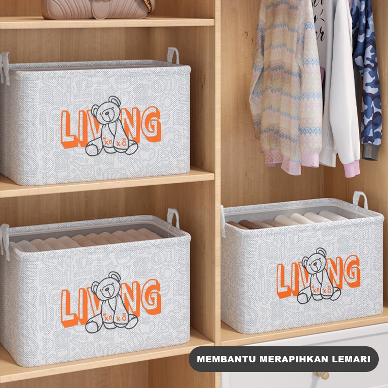Keunggulan : - Dapat Menyimpan selimut, pakaian , mainan dll - Tempat ini mampu melindungi perlengkapan kamu dari debu - Hemat tempat - Memiliki bahan yang lembut, tebal dan halus - Memiliki tali sebagai pengikat untuk Penutup - Memiliki diameter ruang yang luas , maka kamu bisa memuat banyak kebutuhan.