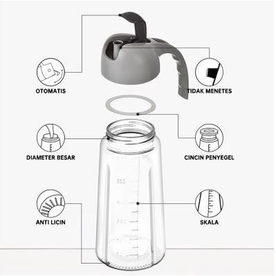 Botol ini dapat Anda gunakan sebagai wadah penyimpanan bumbu makan seperti kecap.cuka,minyak wijen,dll. Anda juga dapat meletakan botol ini di meja makan,sehingga meja makan Anda terlihat lebih rapi dan mewah. Dan dengan tutup nya yg otomatis anda tidak perlu repot untuk membuka nya saat dipakai .