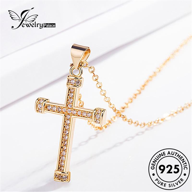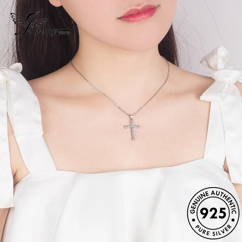 Detail Tempat Perhiasan Wanita Salib Perak Berlian Asli925 Kalung Emas Klasik Moissanite N795