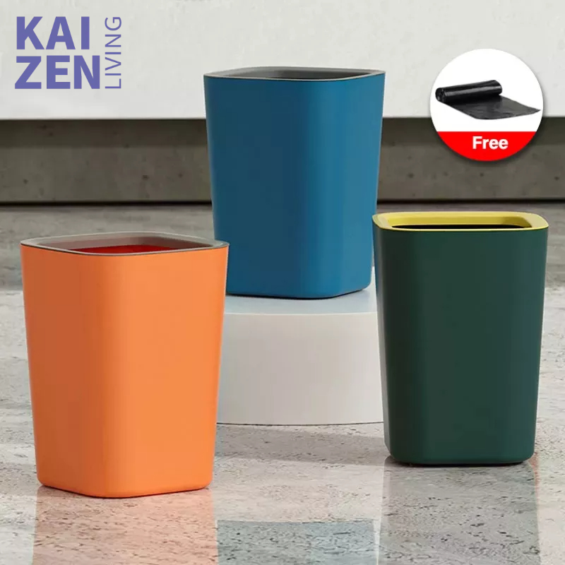 Bahan: PP Warna: Biru, Oranye, Hijau Daftar kemasan: tempat sampah * 1 Ukuran produk: 18*18*30cm Pengepakan: tas OPP Ukuran kemasan: 18*18*30cm Berat: 345g