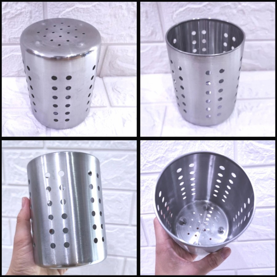 Detail Tempat Sendok Garpu Pisau Gunting Stainless Steel Tabung Peniris