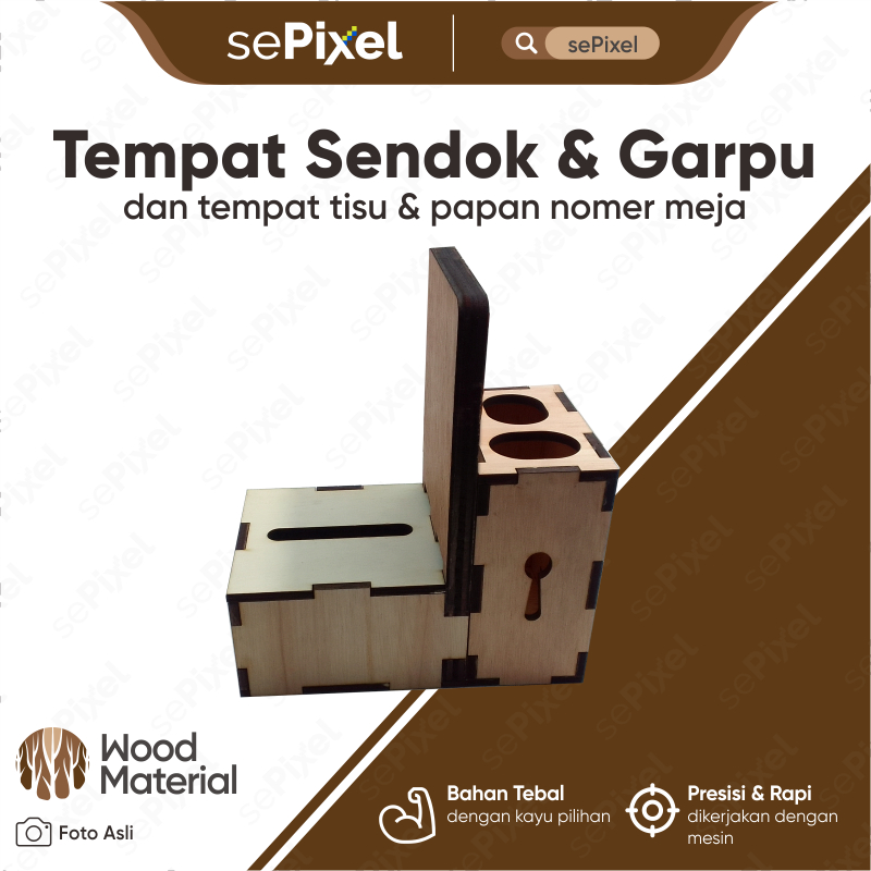 Tempat Sendok, Garpu, tempat tisu, nomer meja warung bakso mie warteg kafe hik bahan kayu