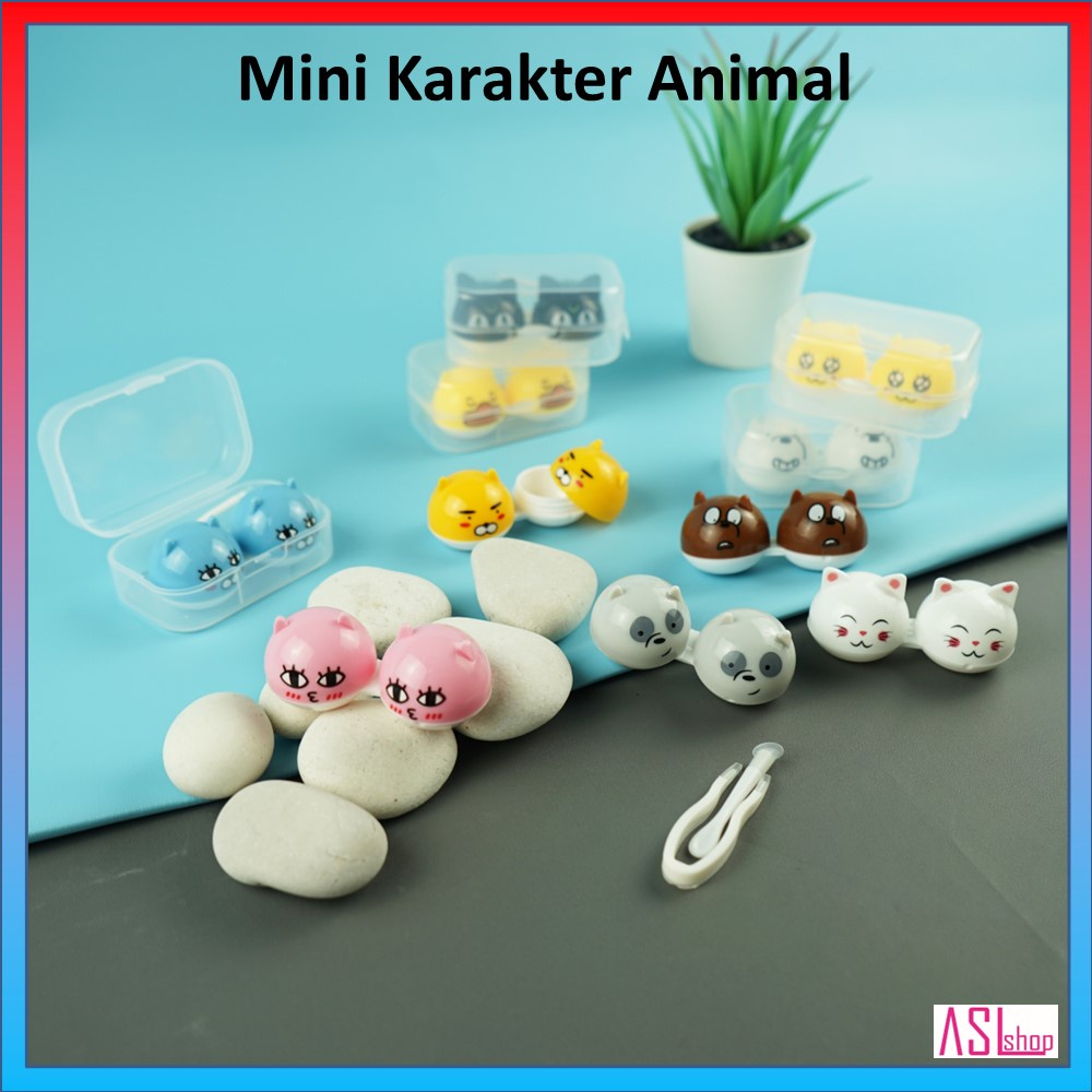 Tempat softlens mini karakter animal Kecil dan ringan, mudah dibawa, cocok untuk traveling Terdiri dari: - Lenscase - Jepitan - Stik untuk memasang softlens