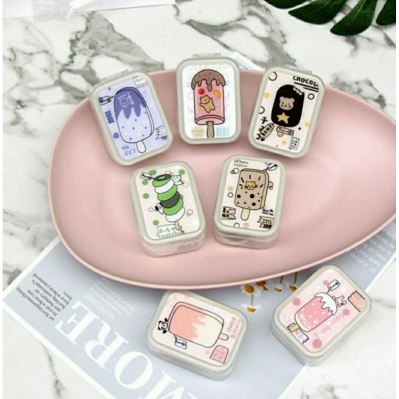 Jika dibuka dalamnya terdapat cermin, botol tempat air softlens, pinset, wadah untuk tempat softlens. Bentuknya tipis dan mungil, cocok dibawa berpergian, gak perlu kuatir softlens kering atau perih saat berada di luar rumah.