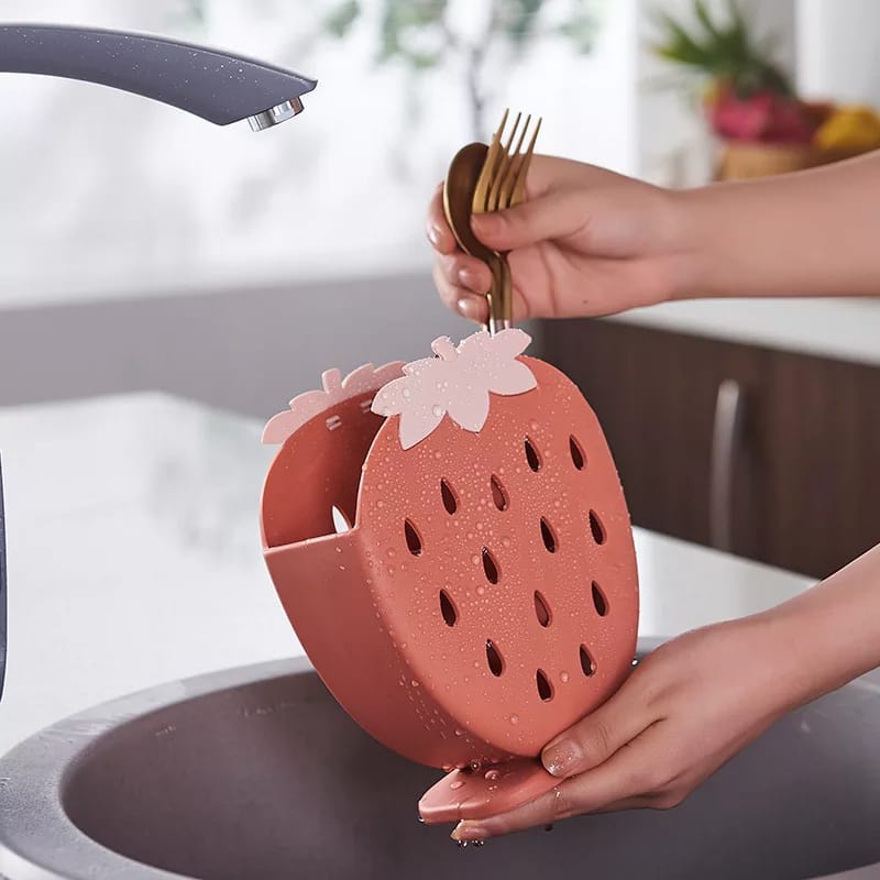 Tempat Tirisan Sendok Garpu Motif Strawberry Multifungsi Serbaguna