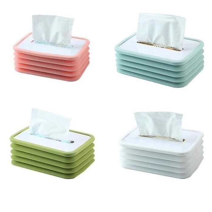 Kotak tisu dengan desain modern minimalis, material silicone+plastik, Desain yang unik dapat di lipat/atur sesuai isi tissue. Multifungsi dan hemat tempat.