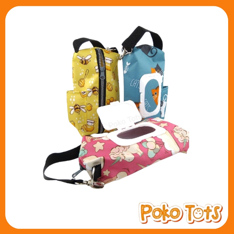 - WATERPROOF (anti air) - Bagian depan (terdapat flip penutup) untuk tissue basah - Bagian belakang (terdapat resleting) untuk tissue kering - Bagian samping terdapat slot untuk menyimpan hand sanitizer/ minyak telon/ minyak kayu putih, dll - Gantungan model PENGAIT, bisa dilepas pasang jika diperlukan untuk digantung di tempat lain. Tali berbahan webbing aman dicuci berkali2 tidak akan lapuk, jadi bisa dibawa2 ke pasar / digantung di mobil, stroller, baby chair, dll.
