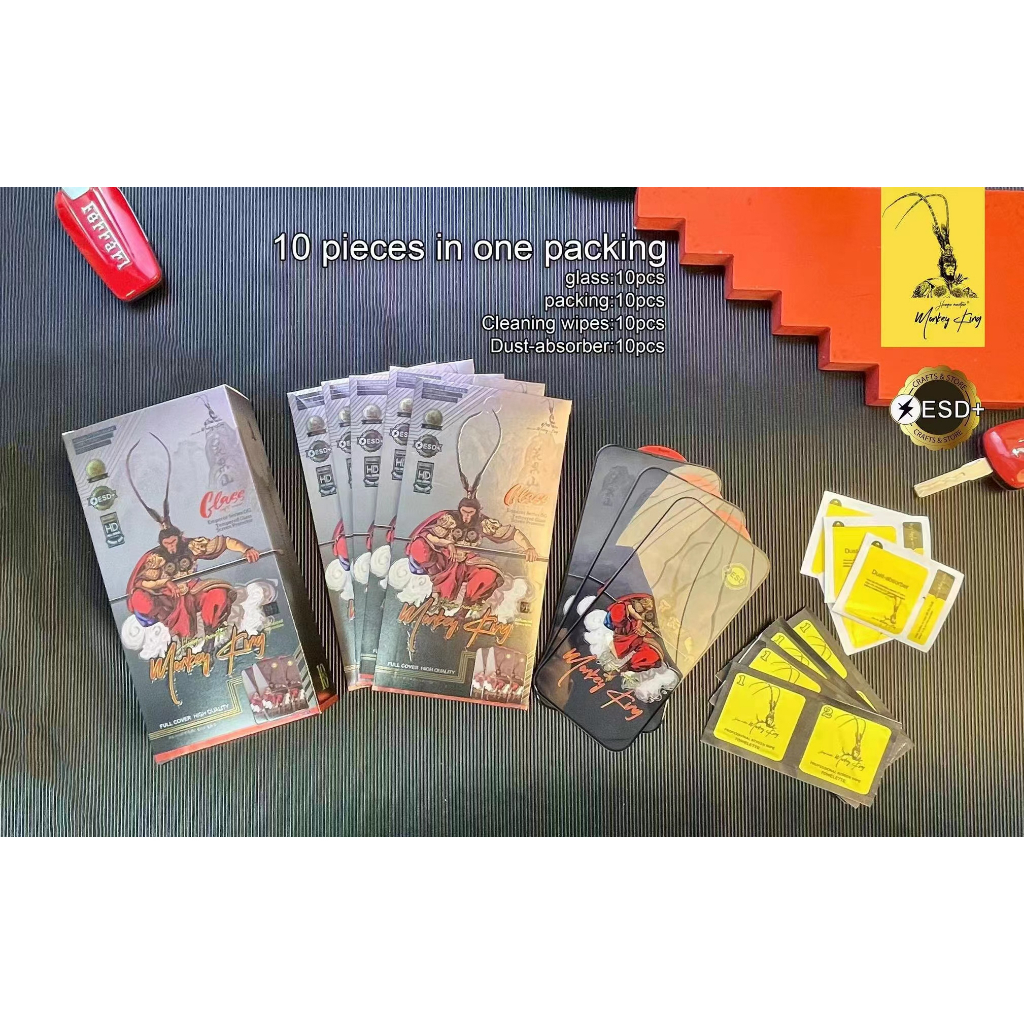 Tempered Glass ESD Monkey King HD * Anti Static Silkscreen,Anti Debu,Anti Air * Kaca alumina tinggi, busur besar definisi tinggi * Ketebalan Glass 0.3mm * temper selama 4 jam, lem 280AB anti-statis yang diperkuat * dilipat menjadi dua sesuka hati ,Meminyaki plasma pada kepala ganda Anti-gesekan 3500 kali