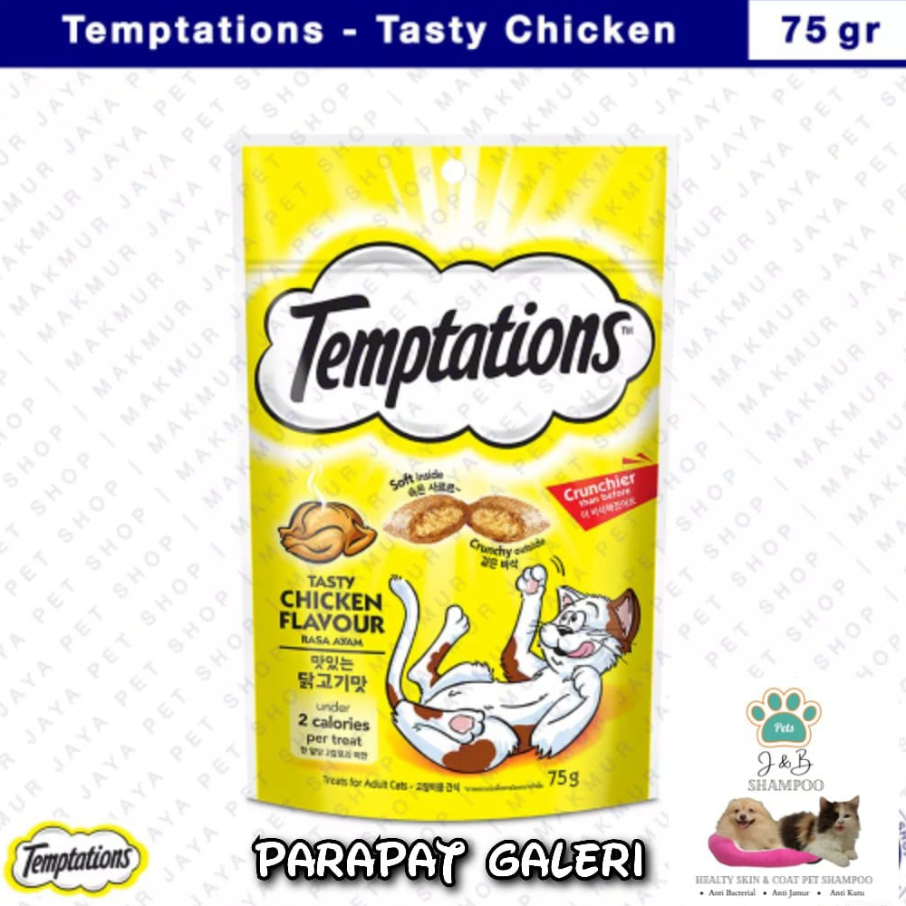 TEMPTATIONS Snack Kucing Kering sangat menyenangkan untuk semua kucing dewasa, karena dibuat dengan daging asli. Snack untuk kucing ini renyah di luar dan lembut di dalam.