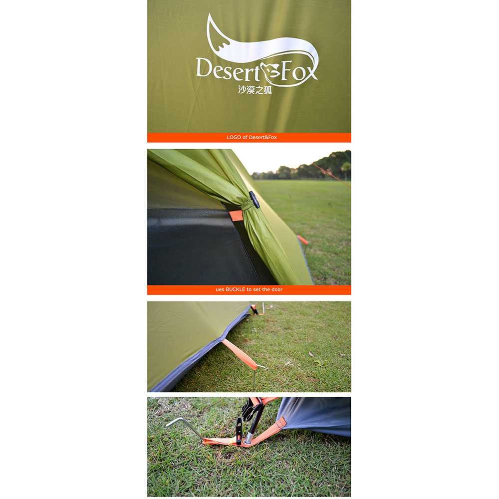 Pemasangan Mudah dan Cepat Tenda ini sangat cepat untuk dipasang, bahkan pemula saja dapat merakit tenda ini dalam waktu 5 menit saja. Anda hanya perlu menempatkan rangka pada slot yang tersedia dan mengikatkan tali pada pasak yang sudah Anda pasang agar tenda dapat berdiri dengan kokoh.