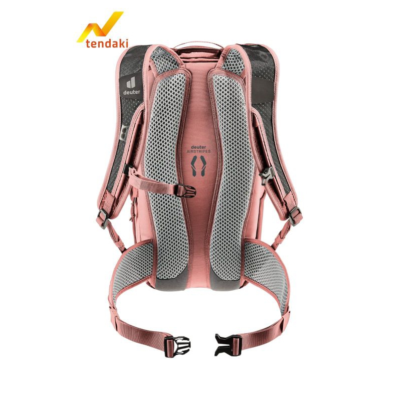 DESCRIPTION This pared down bike backpack with good weight-to-comfort ratio benefits from the breathable deuter Airstripes back system. Providing athletic mountain bikers with good airflow across the back and a snug fit for technical trails. A sternum strap and mesh hip fins give the pack additional stability. With bluesign® approved body fabric made of 100% recycled materials, and components made using environmentally friendly, resource-efficient manufacturing practices, the Race meets the highest environmental standards and is climate neutral, and PFC free.
