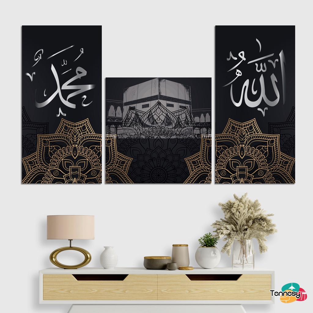 Detail TENNESY HIASAN DINDING SET KALIGRAFI KAKBAH ALLAH MUHAMMAD 3 PANEL WALL DECOR PAJANGAN KAYU POSTER DEKORASI DINDING KAMAR TIDUR RUMAH