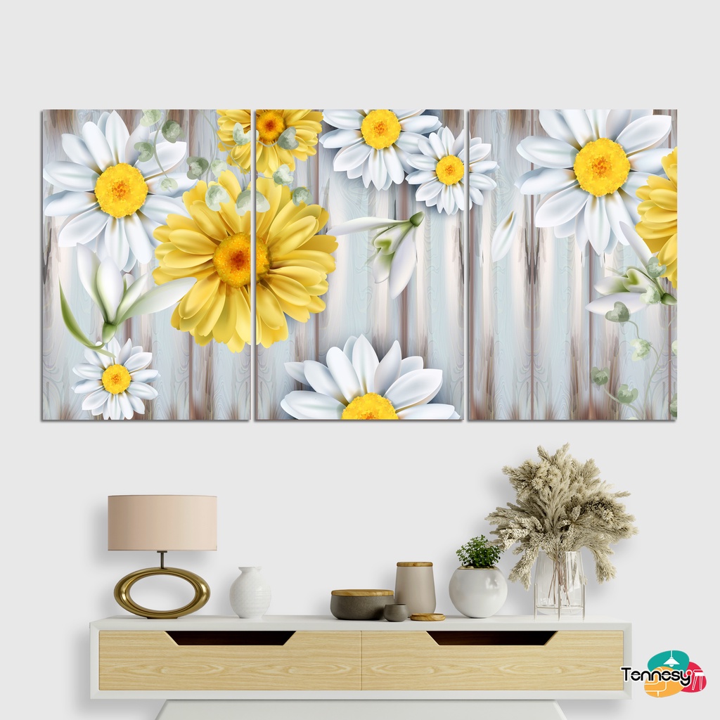 Detail TENNESY Hiasan Dinding Set Bunga Matahari 3 Panel Dekorasi Dinding Kamar Tidur Pajangan Kayu Poster Dekorasi Rumah