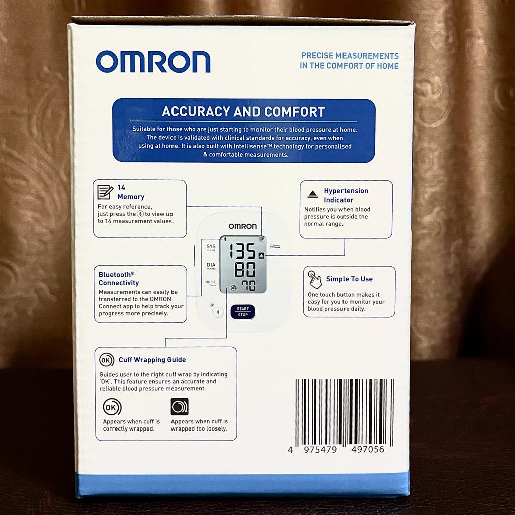 Fitur Produk : (*) Dengan Teknologi Intellisense (*) Direkomendasikan oleh dokter sebagai monitor tekanan darah yang andal (*) Menggunakan manset reguler dengan ukuran lingkar lengan 22 - 32 cm (manset size medium) (*) Fitur Bluetooth untuk transfer data pengukuran ke Smartphone / Handphone dengan Aplikasi OMRON Connect (*) Menyimpan 14 memori hasil pengukuran (*) Panduan pembungkus manset (*) Indikator hipertensi (*) Dual power supply (daya baterai atau daya listrik)