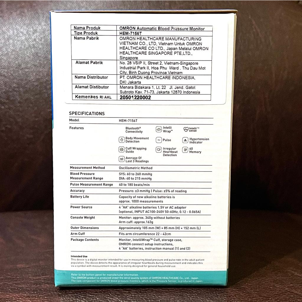 TENSIMETER OMRON HEM 7156T + CONNECT BLUETOOTH / TENSIMETER OMRON MANSET BESAR JUMBO (PENGGANTI TENSIMETER OMRON 7156) Tensimeter Digital Omron HEM 7156T yang dilengkapi dengan fitur seperti indikator Hipertensi, deteksi detak jantung tidak teratur, 360 Accuracy Intelliwrap Cuff berupa manset yang memudahkan Anda mendapatkan pembacaan akurat dengan mudah di rumah serta fitur konektivitas Bluetooth dengan Omron Connect dapat dihubungkan untuk menyimpan hasil pembacaan dengan Smartphone, sehingga memudahkan anda dalam memberikan Riwayat pengukuran tensi darah kepada dokter. Penggunaan pada Lengan Atas. Garansi Resmi Omron Healthcare Indonesia : 5 Tahun. (Klaim Garansi bisa langsung ke alamat yang tertera di kartu Garansi)
