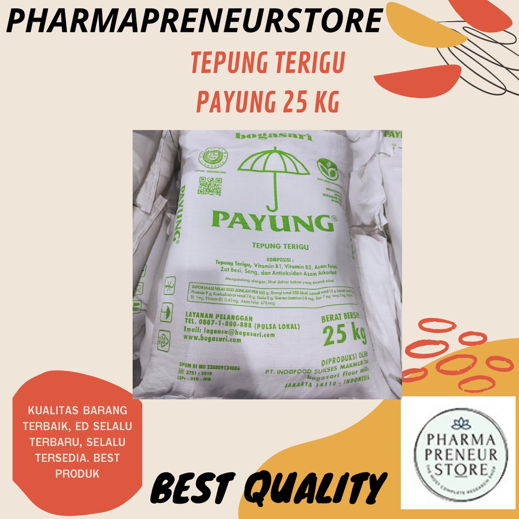 Nama Produk : TEPUNG TERIGU PAYUNG Massa : Gram / 25 KG / ML / L Kemasan : KARUNG Ex Date : Selalu Baru Dan Tertera Di Produk
