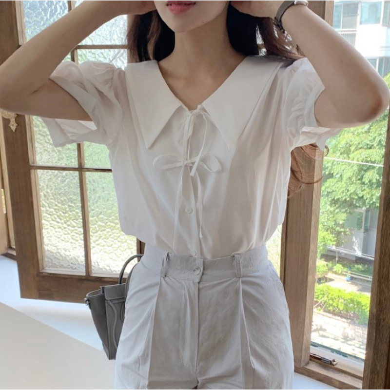 Detail [TERA]Blouse wanita lengan pendek pita kancing Korea Style