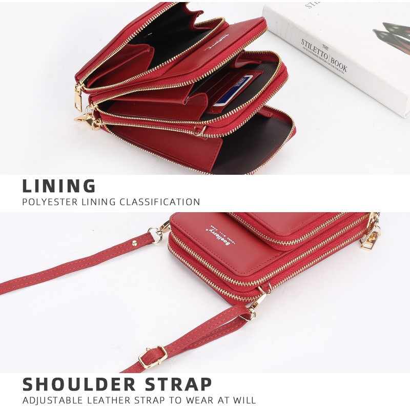 Detail Terbaru 3 Ruang Tas Selempang Dompet Multifungsi Mini HP Ponsel Kulit Wanita Cewek Asli Import 63.ID