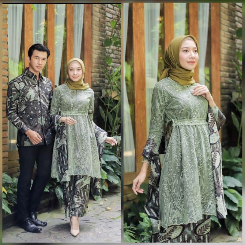 Terbaru || Batik Couple Widya Sage | Kebaya Couple Modern | Kebaya Lamaran Tunangan Wisuda | Couple Tunik Brokat Couple