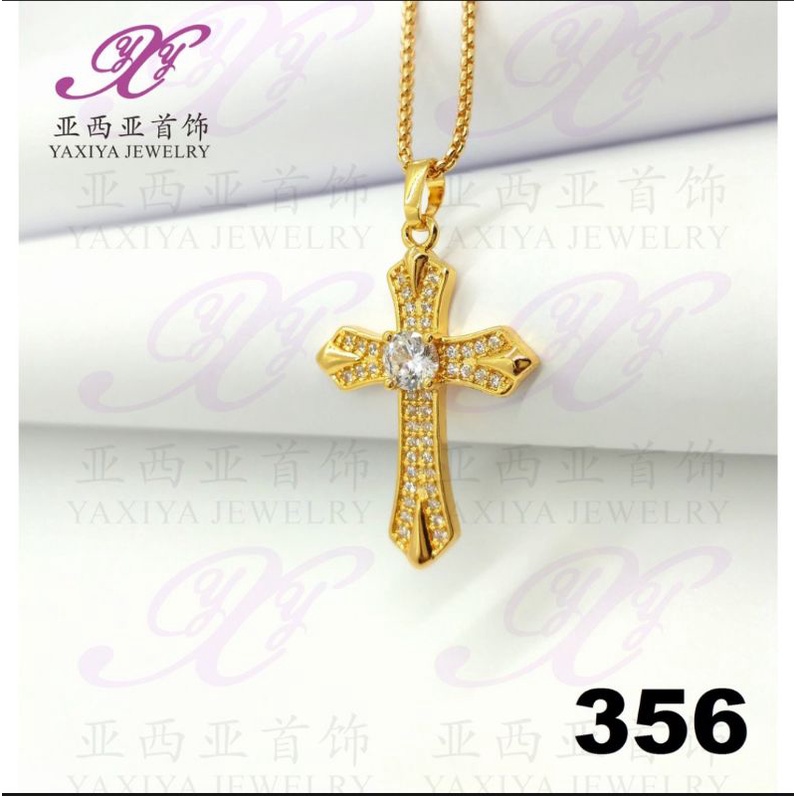Detail TERBARU (COD) kalung titanium plus liontin salib permata gold
