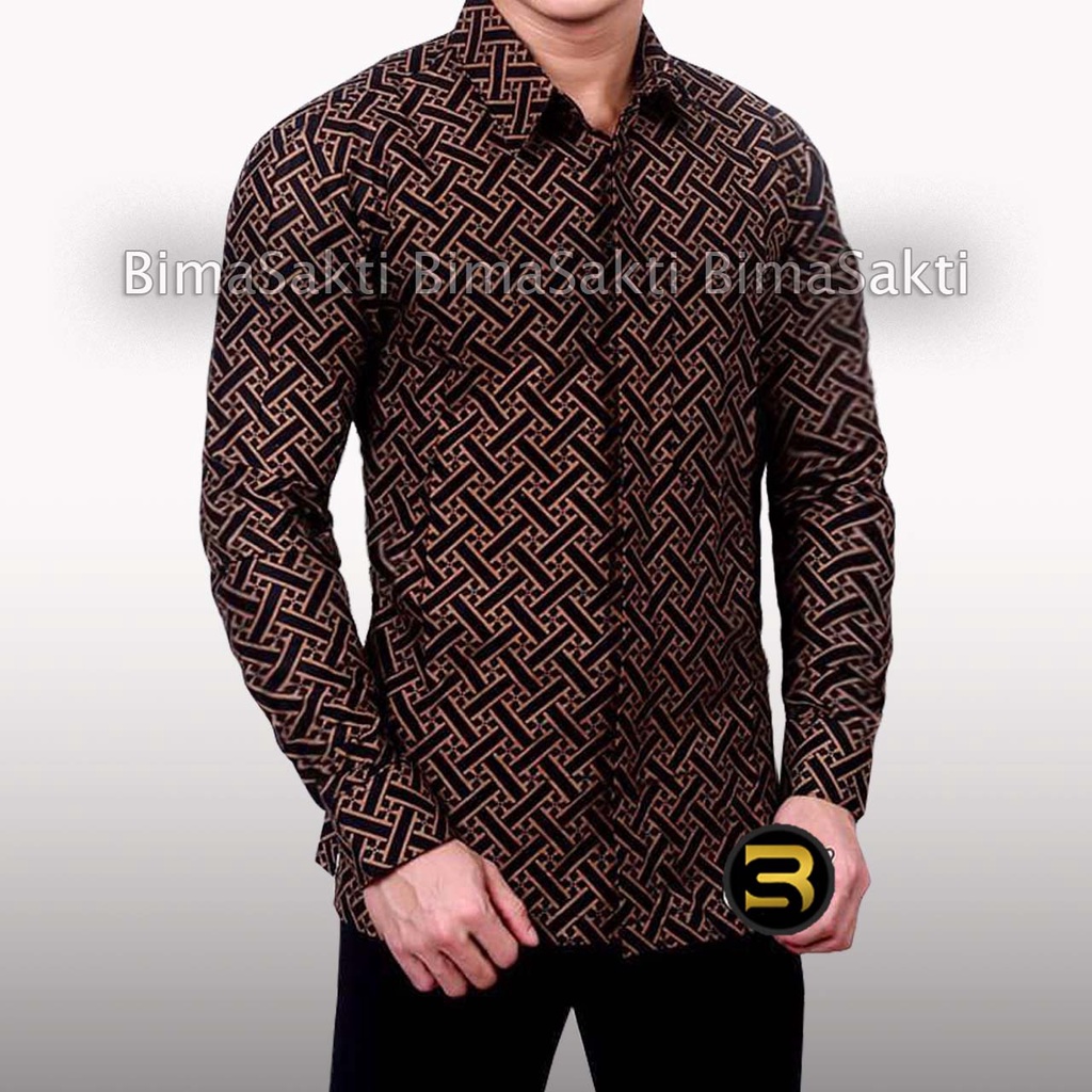 Pakaian Pria > Batik > Atasan Batik > terbaru kemeja batik pria dewasa sogan lawasan coklat kemeja batik casual bimasakti seragam batik M L XL XXL - baju batik pria lengan panjang - baju batik pria lengan pendek.