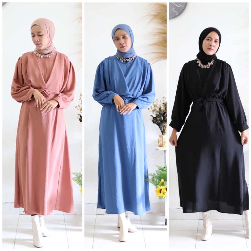 Detail teresa drees by elslook (READY STOK) dress crinkle airflow busui friendy belt terpisah gamis kondangan simple dress silk dress satin maxmara dress kondangan ootd lamaran material: