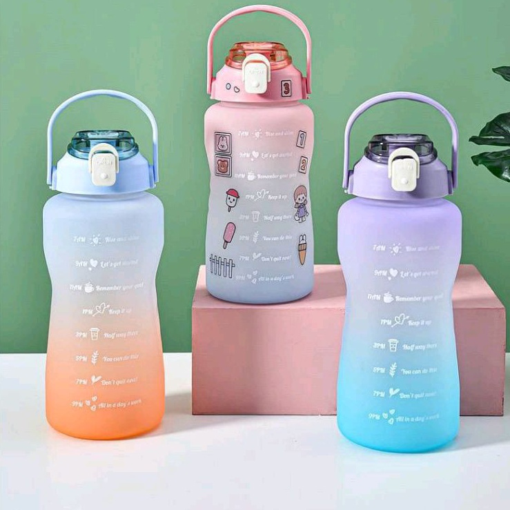 KEUNGULAN : Di design dengan penanda waktu untuk mengingatkan konsumsi air per 2 jam, lengkap dengan pegangan yang kuat, ringan namun tahan lama untuk digunakan, hadir dengan berbagai warna cerah, ini sangat cocok untuk hadiah orang yang Anda cintai, untuk membantu mereka tetap terhidrasi dan sehat. - Memiliki Handle yang gampang ditenteng - Memiliki sedotan yang bisa dicopot pasang - Bahan plastik PC - Tidak mudah pecah saat ga sengaja jatuh dr ketinggian - Tidak mudah bocor - Warnanya unik seperti rainbow