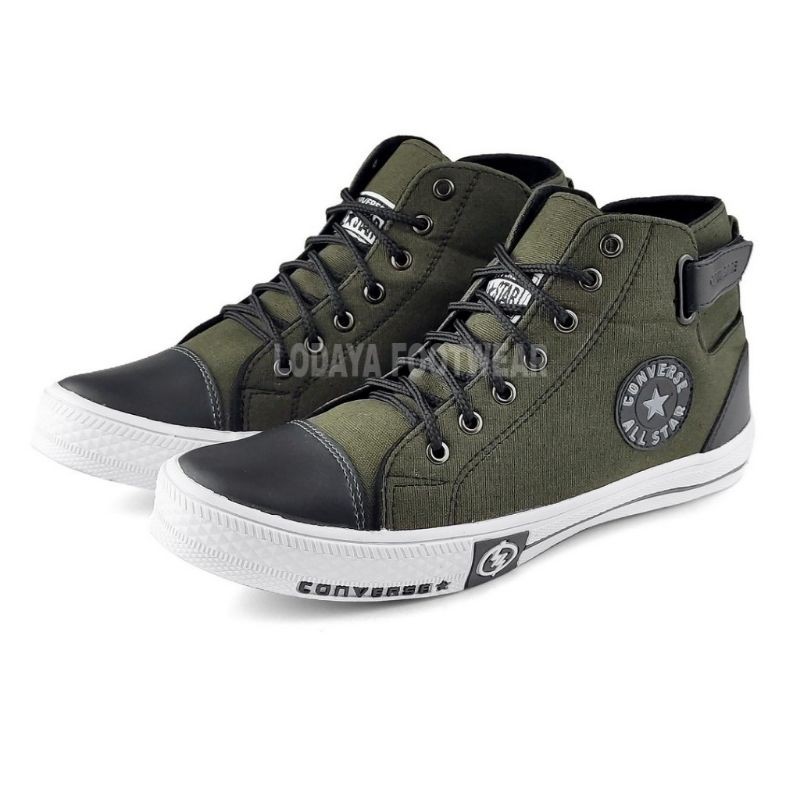 MODEL HIGH/TINGGI RIPET Detail barang : @Hight Quality @Bahan Canvas 12 @Jahitan Canvas Stroble ( Kuat ) @Model sesuai foto 100% @Type Sol mangkok bukan datar ( Nyaman ) @Insol Lunarloon @Include Box Converse @Logo Petir / full motif tulisan Converse