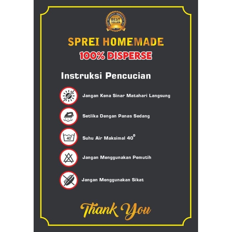 Kwalitas : ❤️Sprei tinggi fix 20cm tepi jahit rapi ❤️Elastik lebar 3cm lebih kuat ❤️Karet 4 sudut pojok ❤️Sarung bantal/guling obras rapi ❤️Sargul tali terpasang ❤️KEMASAN TAS