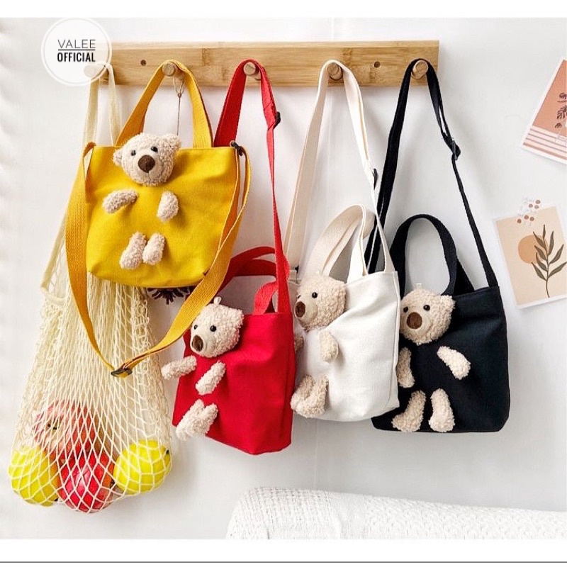 Tas Wanita > Tote Bag > Tote Bag > TERLARIS TAS KANVAS Boneka 3D IMPORT MOTIF LUCU TERMURAH HANDBAG 2in1 6616 souvernir Hand bag Tote bear teddy bear lucu 3D bisa Selempang