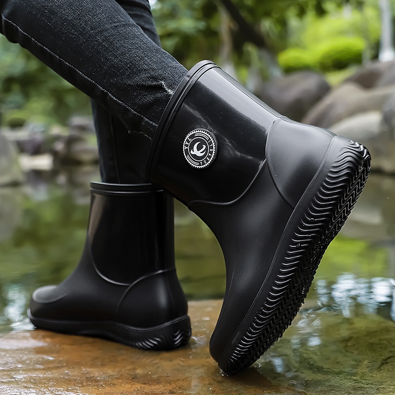 Detail Terlaris Waterproof Murah Cowok Dewasa Keren Sepatu Sawah Pria Boot Karet Full Hitam Kerja Proyek Anti Air Banjir Hujan PVC Klasik 232