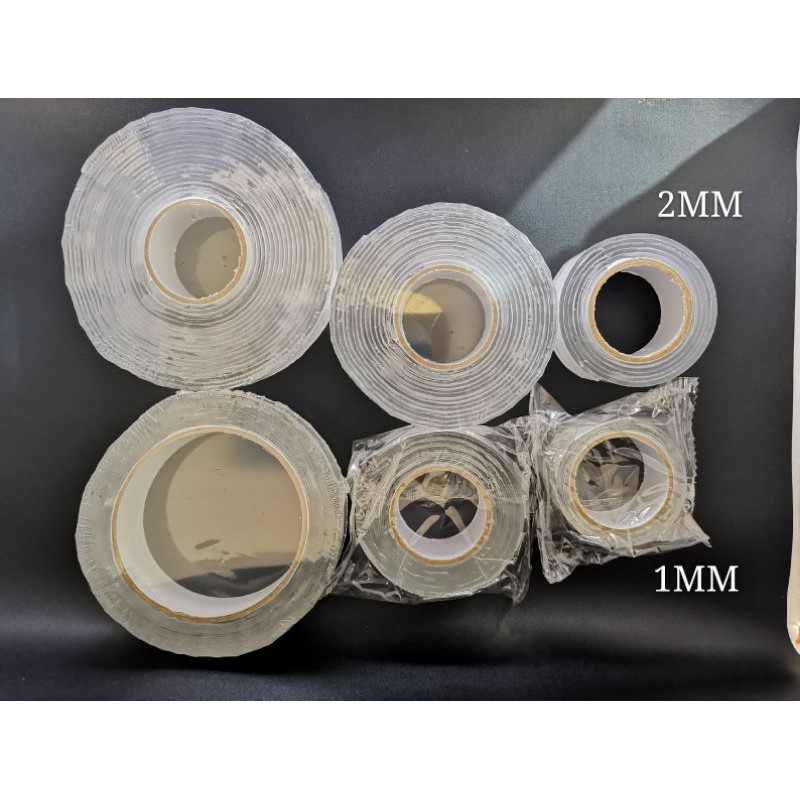ketebalan double tape ukuran 1mm = dapat menahan beban 1kg an