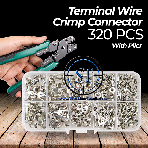 Konektor Crimp Kawat Terminal adalah jenis konektor listrik tanpa solder yang berfungsi untuk mengakhiri aliran kabel. Dapat disambungkan ke berbagai jenis konfigurasi seperti konektor kaki sekop, sambungan kawat dan terminal sekrup. Anda akan mendapatkan 320 buah konektor terminal dengan berbagai jenis ukuran saat membeli produk ini. Set ini juga dilengkapi dengan tang yang dapat digunakan untuk mengupas dan memotong kabel serta menekan konektor.