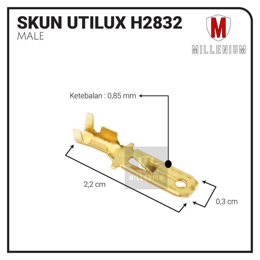 Detail Terminal Skun UTILUX Cowok | Skun Male | Konektor Kabel Gepeng | Skun Besar H2832 Original - 150pcs