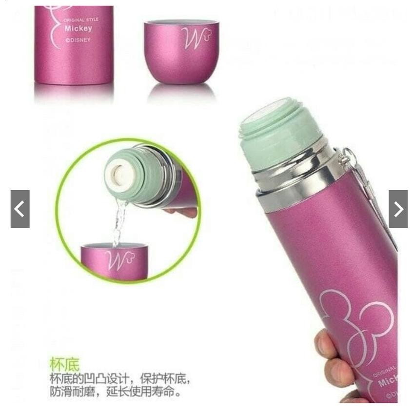 TERMOS STAINLESS 500 ML Termos Stainless Steel 500ml dgn design yg lucu..unik dan ramah lingkungan. -Menjaga suhu minuman lebih lama (-/+8-12jam) -Dua lapis stainless steel dan lapisan insulator panas high tech yg berada di bagian tengah lapisan. -Praktis..mudah di gunakan dan dapat di bawa kemana-mana. -Dengan tali untung di tenteng. -Tutup Plastik yg aman untuk makanan berstandar food grade PP. -Design tutup yang nyaman dan aman. -Anti Karat. -Hadir dengan design kartun Mickey Mouse yang lucu dan imut. Sangat cocok untuk kado,hadiah,sovenir dan untuk bekal minum di perjalanan anda..
