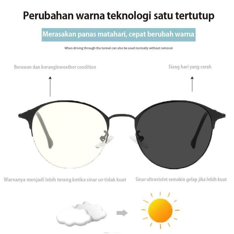 Fitur Utama : ✅ Dengan mengenakan kacamata kami, dapat memberikan perlindungan di dalam dan luar ruangan secara lengkap. ✅ ANTI MATA LELAH; lensa kami dapat menghilangkan kelelahan mata terutama ketika menonton TV dan bekerja di depan komputer. ✅ ANTI UV400; dengan lensa UV 400, ia dapat 100% memblokir sinar UVA & UVB berbahaya yang berasal dari sinar matahari. ✅ LENSA FOTOCHROMIC; lensa akan berubah warna secara otomatis saat terkena sinar matahari. ✅ Ini adalah barang yang HARUS DIMILIKI bagi orang-orang yang menggunakan perangkat digital untuk waktu yang lama (pekerja kantor dan siswa, dan lain-lain.)